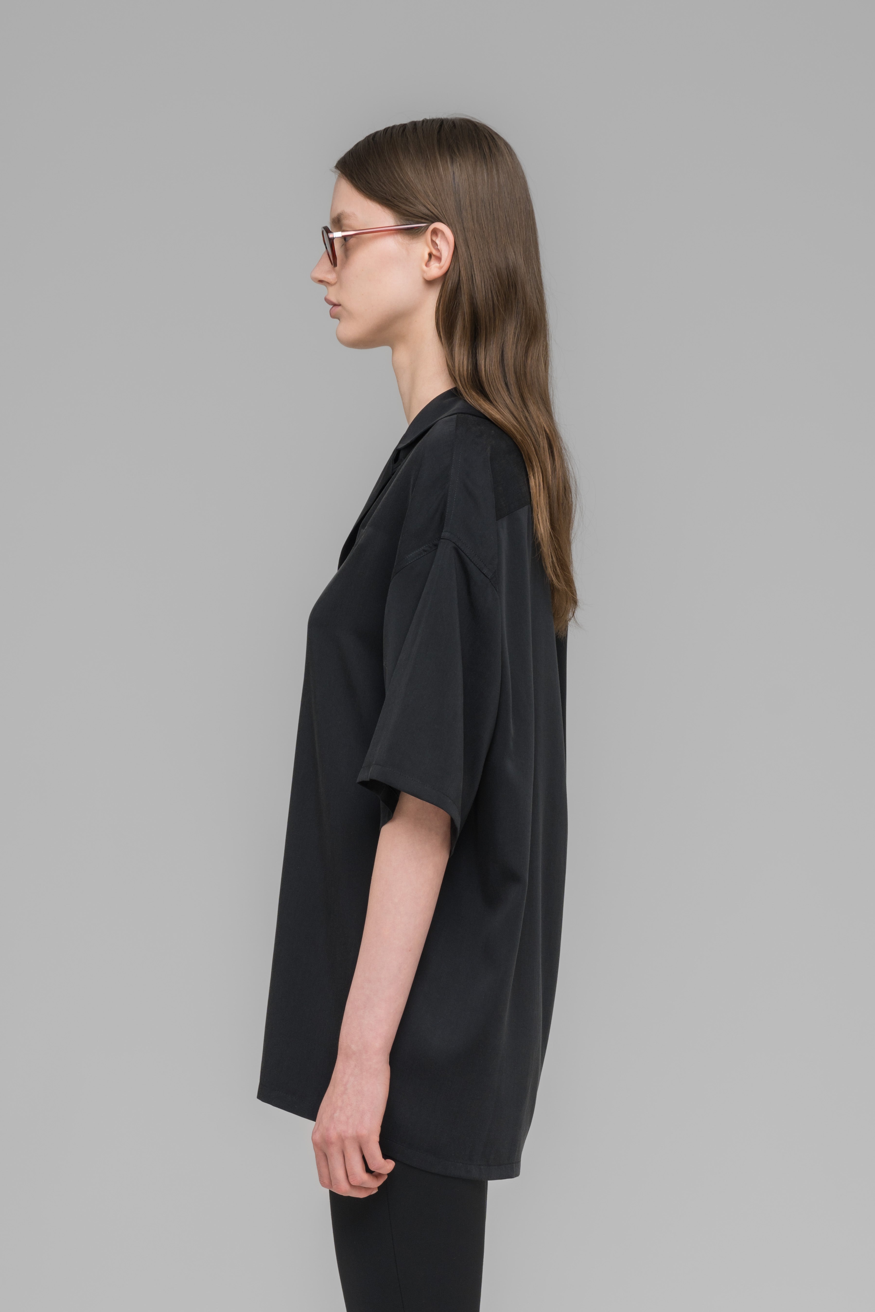Relaxed-fit bowling shirt crafted from fluid satin, featuring a seasonal 032c artwork on the front. Shell covered front buttons.