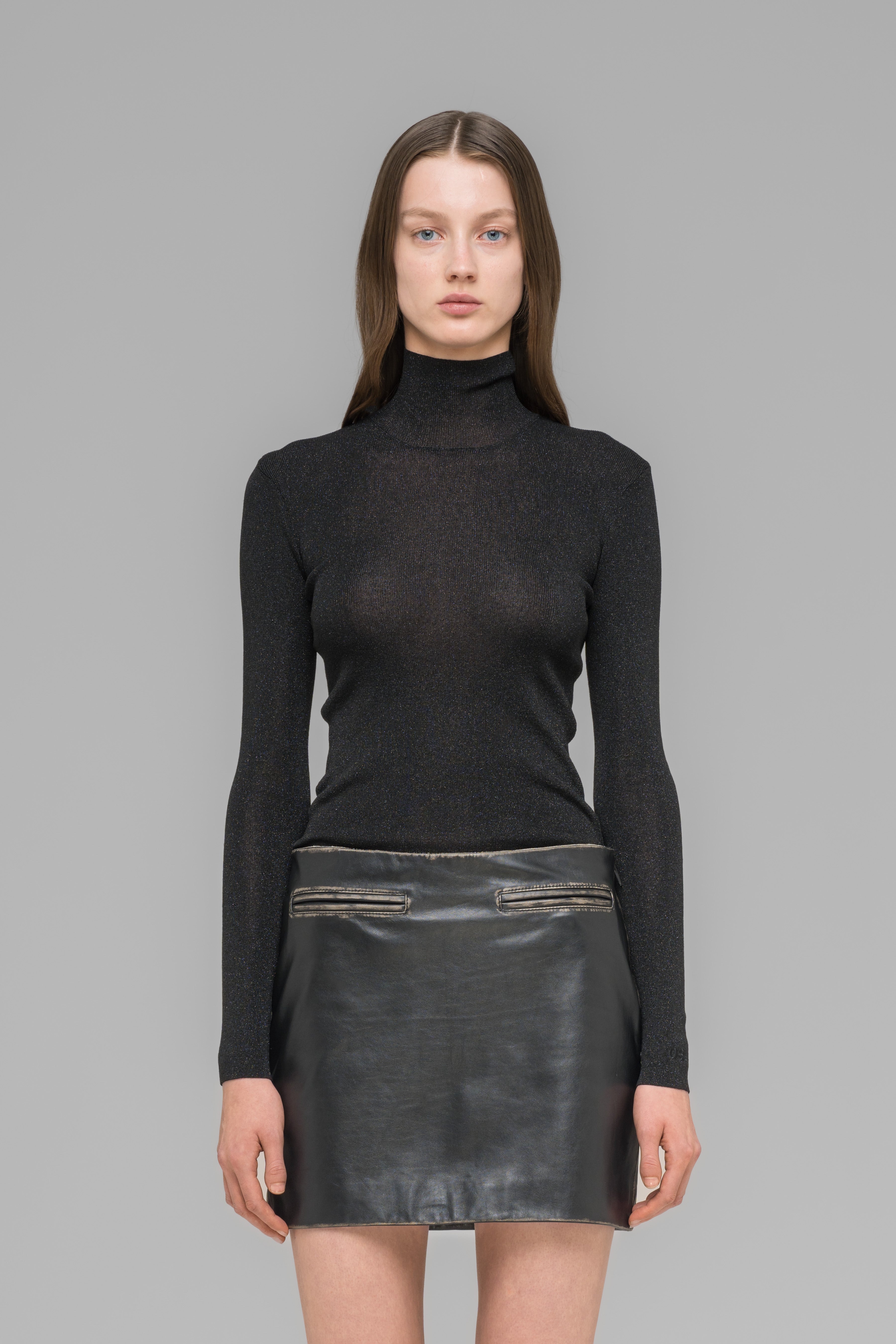Tight fit longsleeve turtleneck, made out of lurex knitted rib fabric.