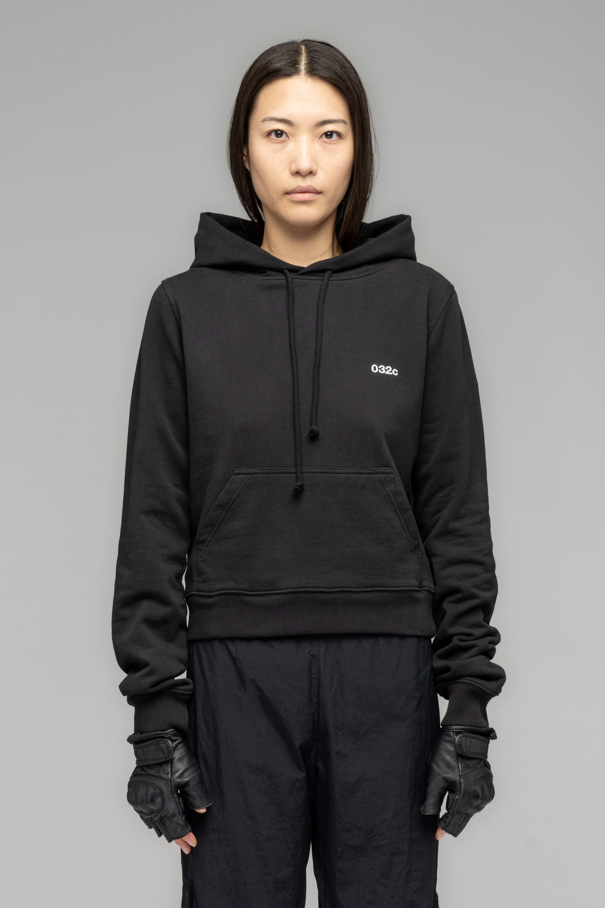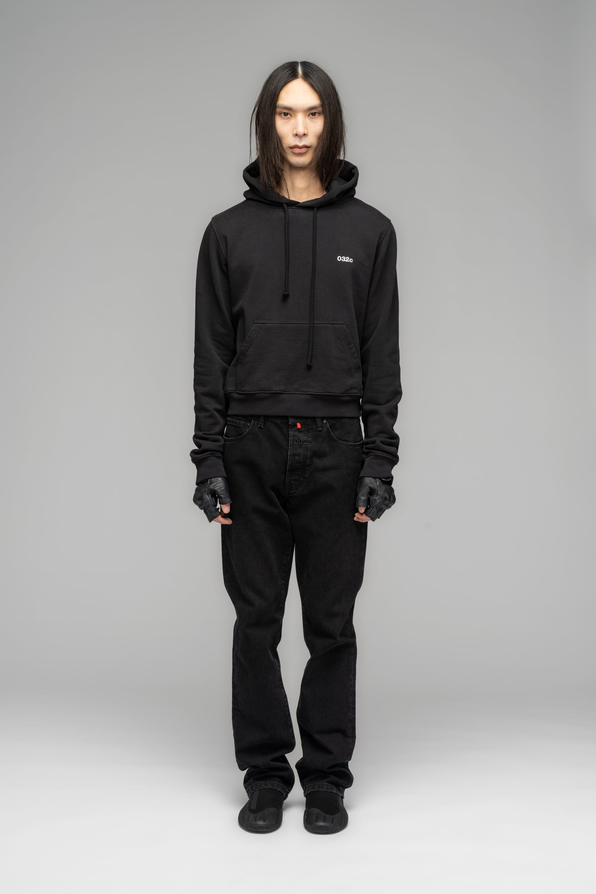 Our new fitted hoodie shape, featuring a light wash and our classic 032c logo embroidery on the chest.