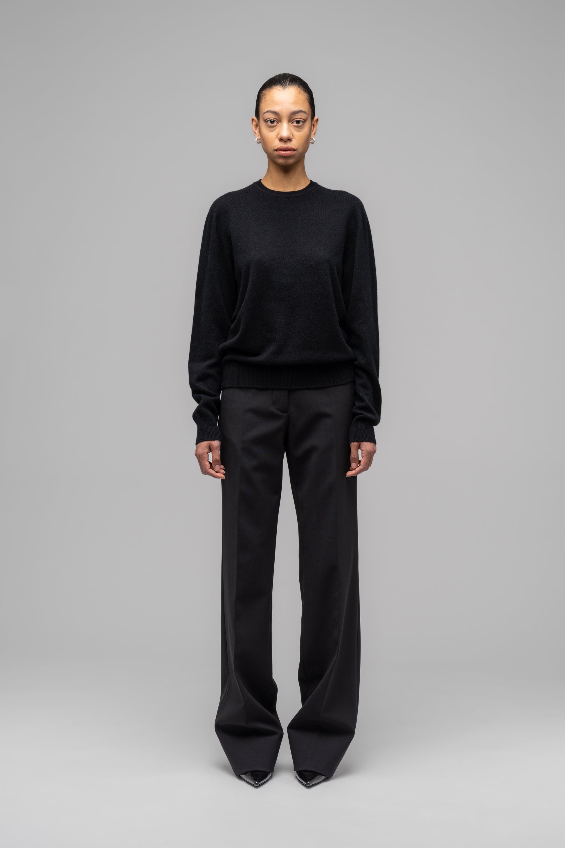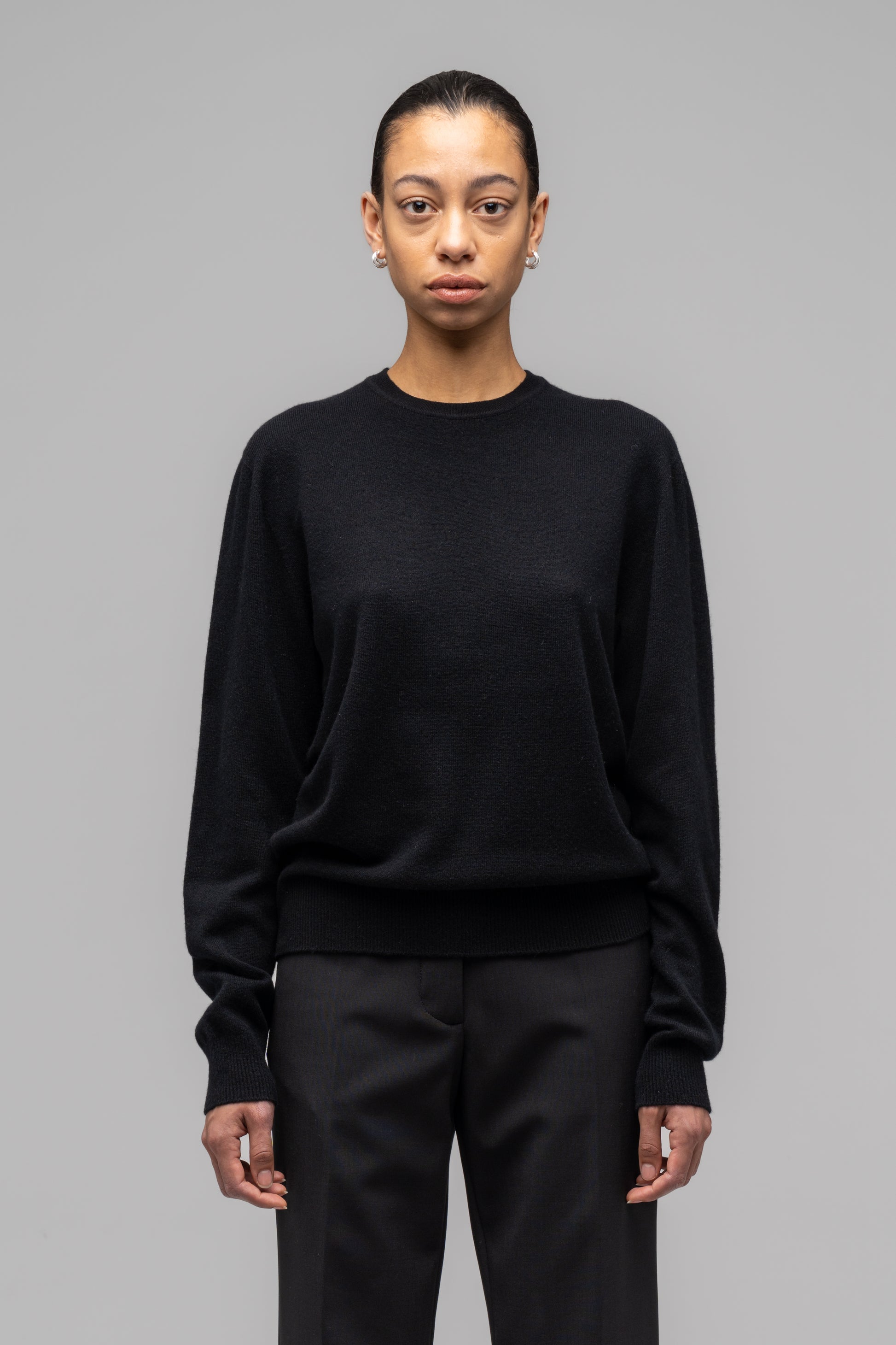 Our classic cashmere blend sweater that protects you from the cold and wraps you in a soft and warm hug. Classic 032c red logo embroidery on the front.