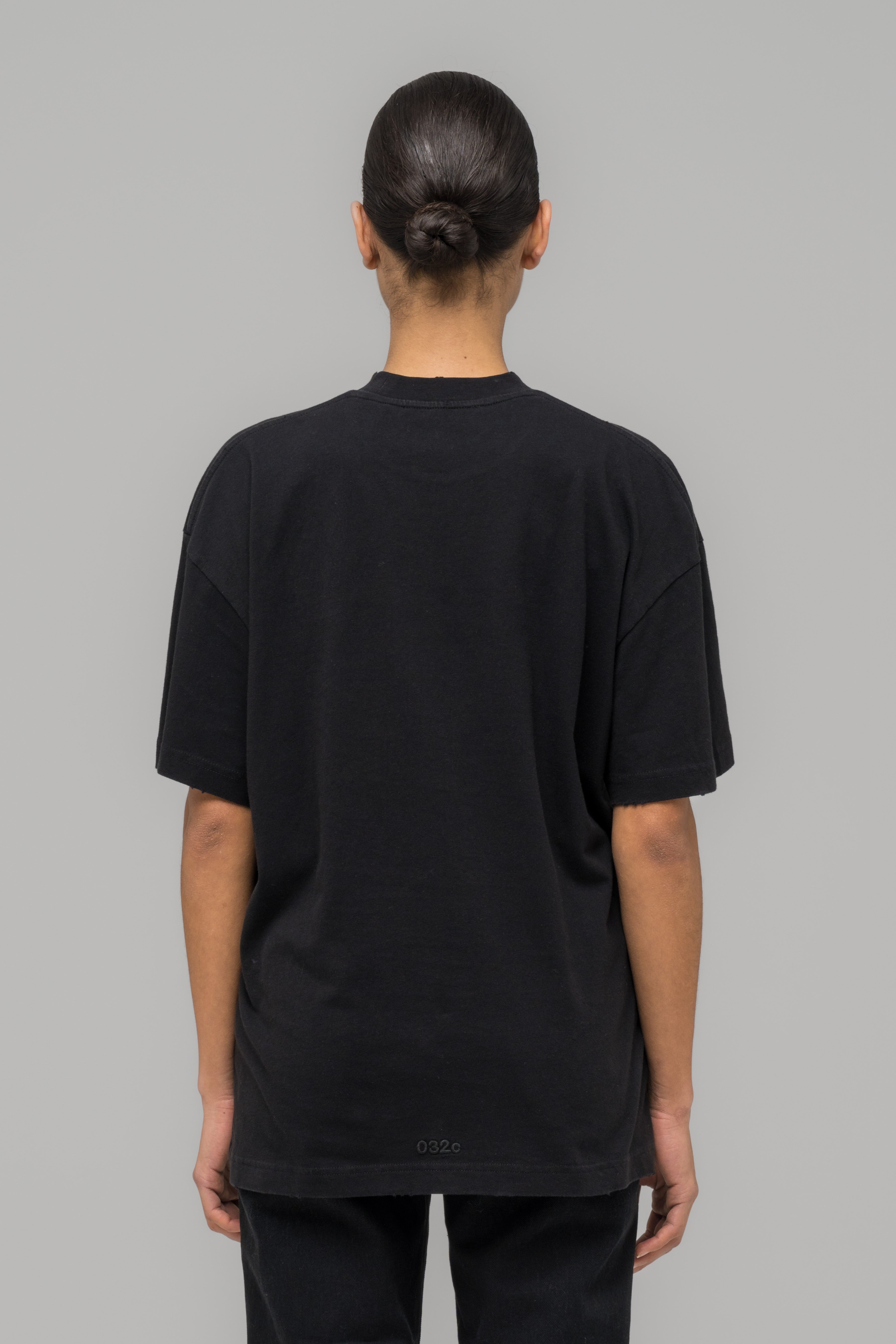 Regular-cut washed black t-shirt with front "LUCKY STRIKE" screenprint and tonal embroidered 032c logo at the back, heavily washed and lightly distressed for a vintage feel.