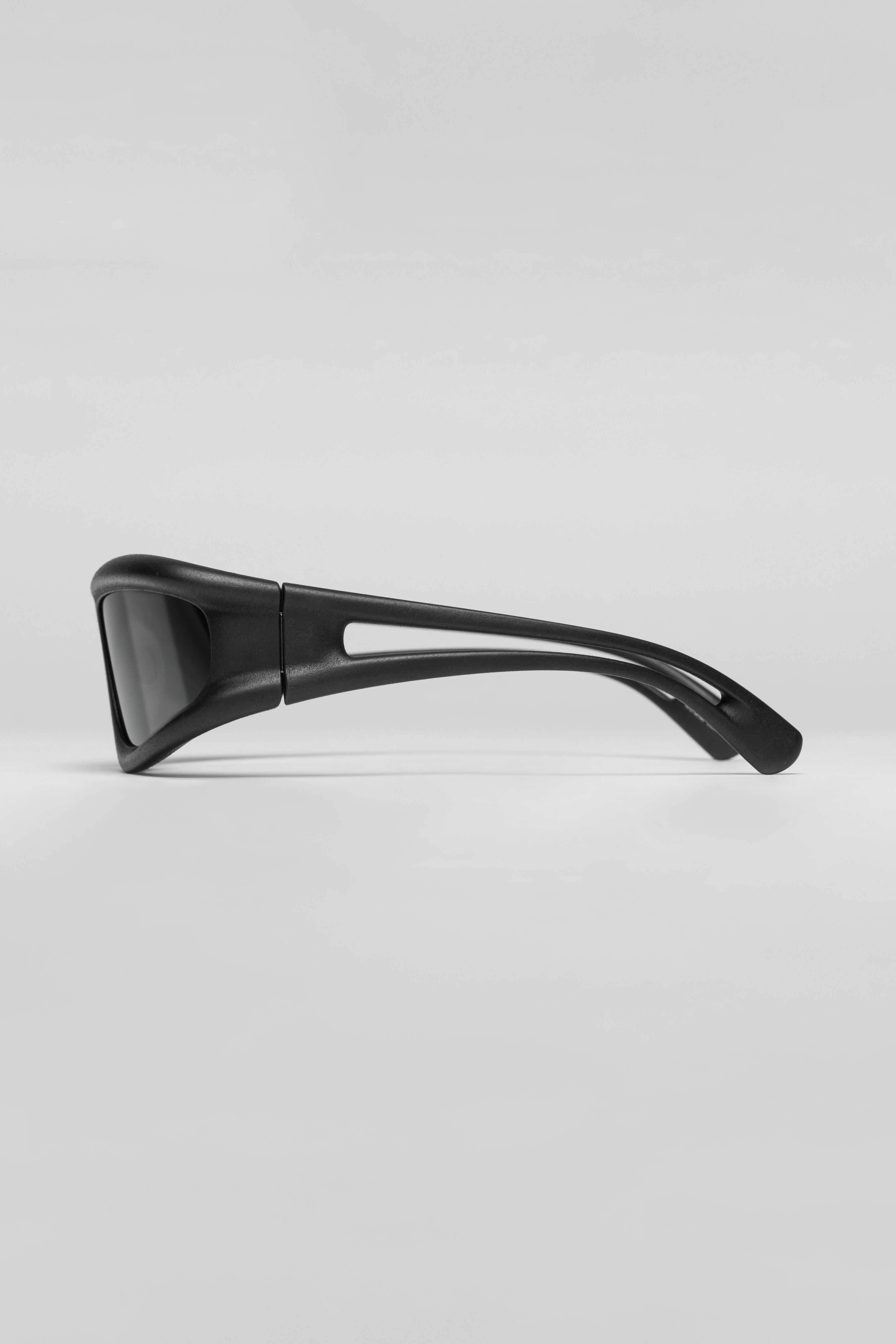 Material: MYLON Frame: MD1 Pitch Black Lens: Dark Grey Solid Shield Hydrophobic nano coating Patented hinge system Individually adjustable Tinted polyamide sun visor with 100% protection against UVA/UVB rays and an anti-reflective inner coating Lightweight Comes with branded eyewear case and cleaning cloth Handmade in Berlin