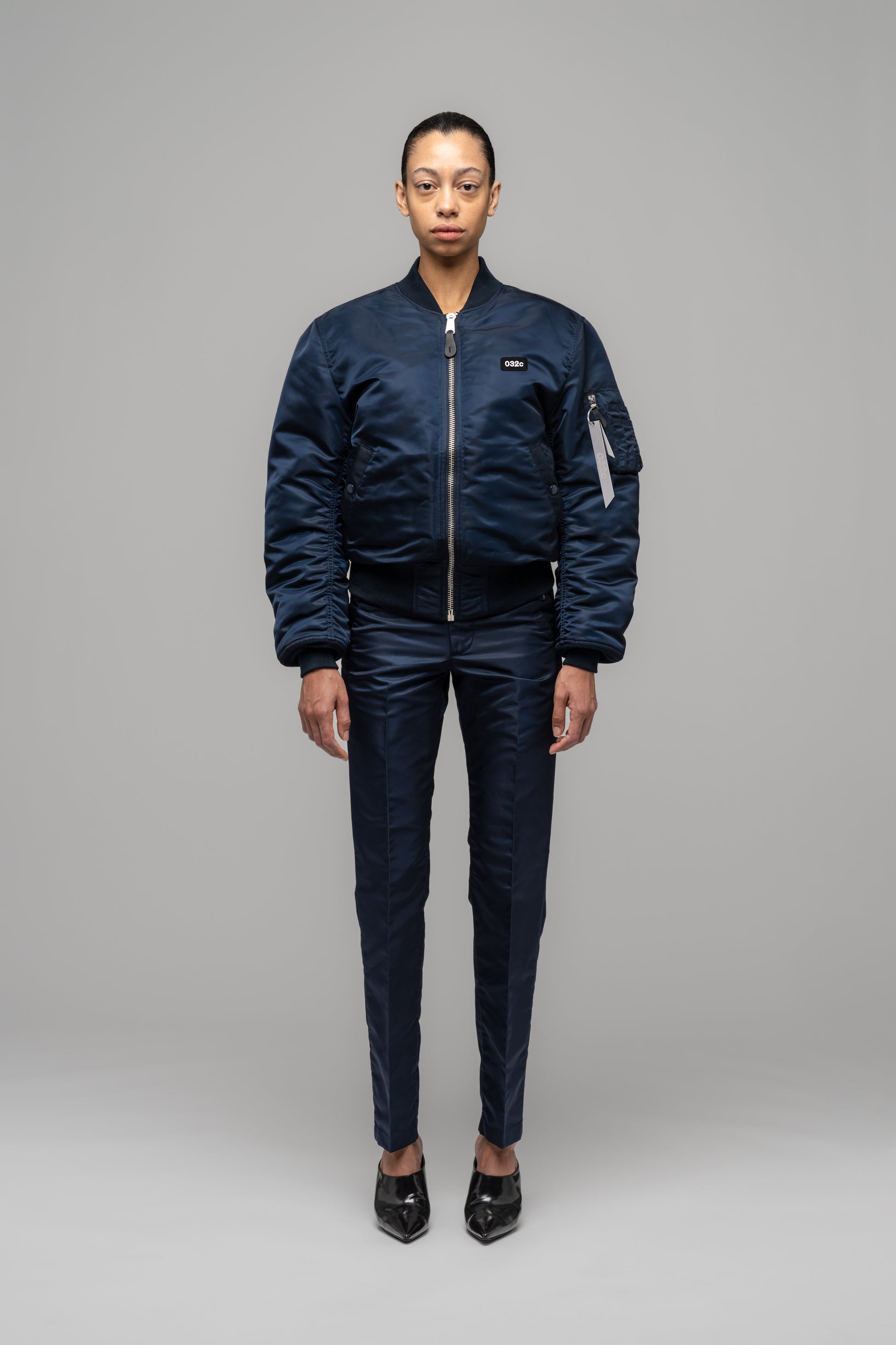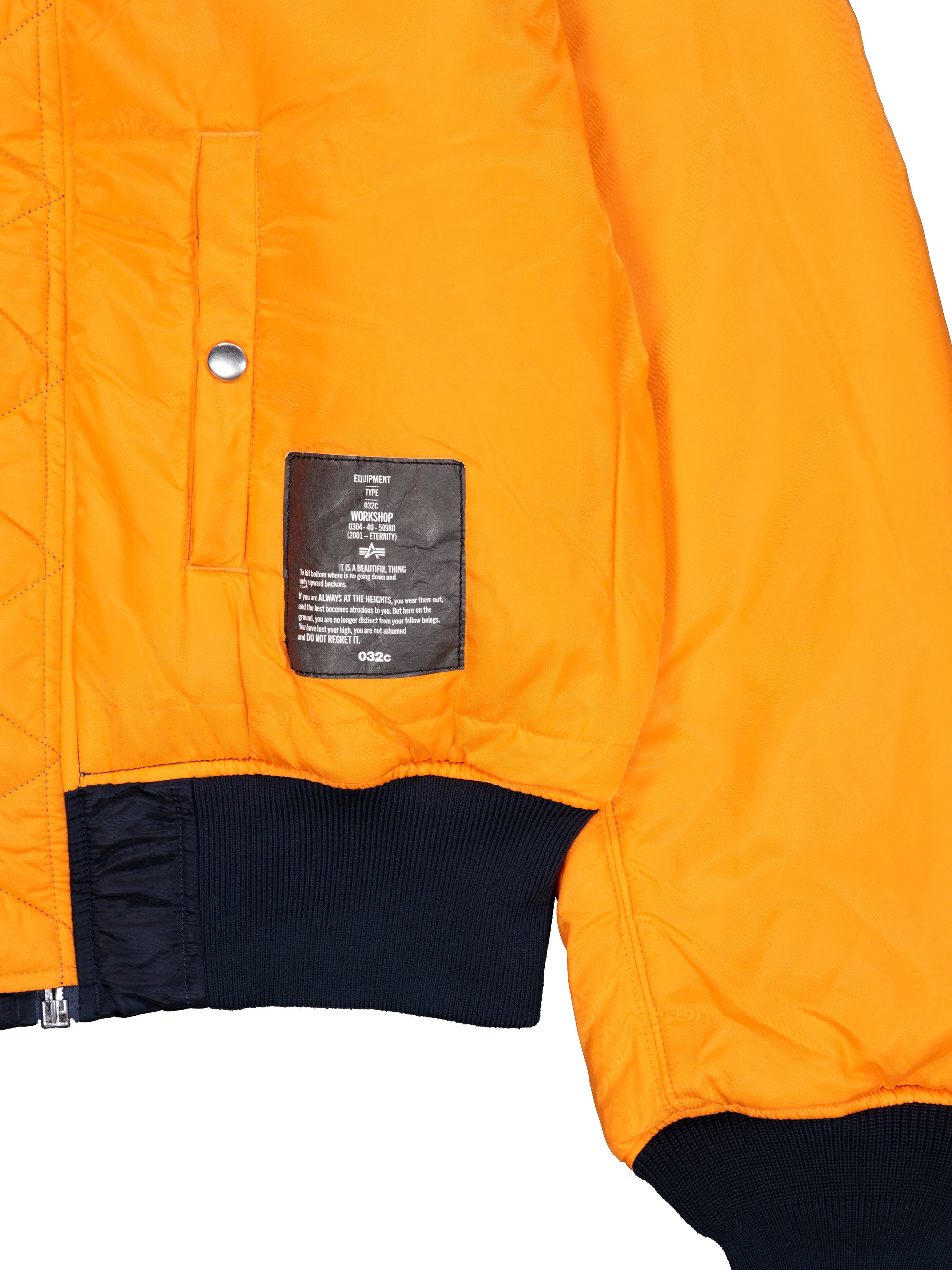 Reversible flight bomber jacket crafted from the original heavy nylon twill. Lightly padded feel for warmth. Collection metal keyring on sleeve.