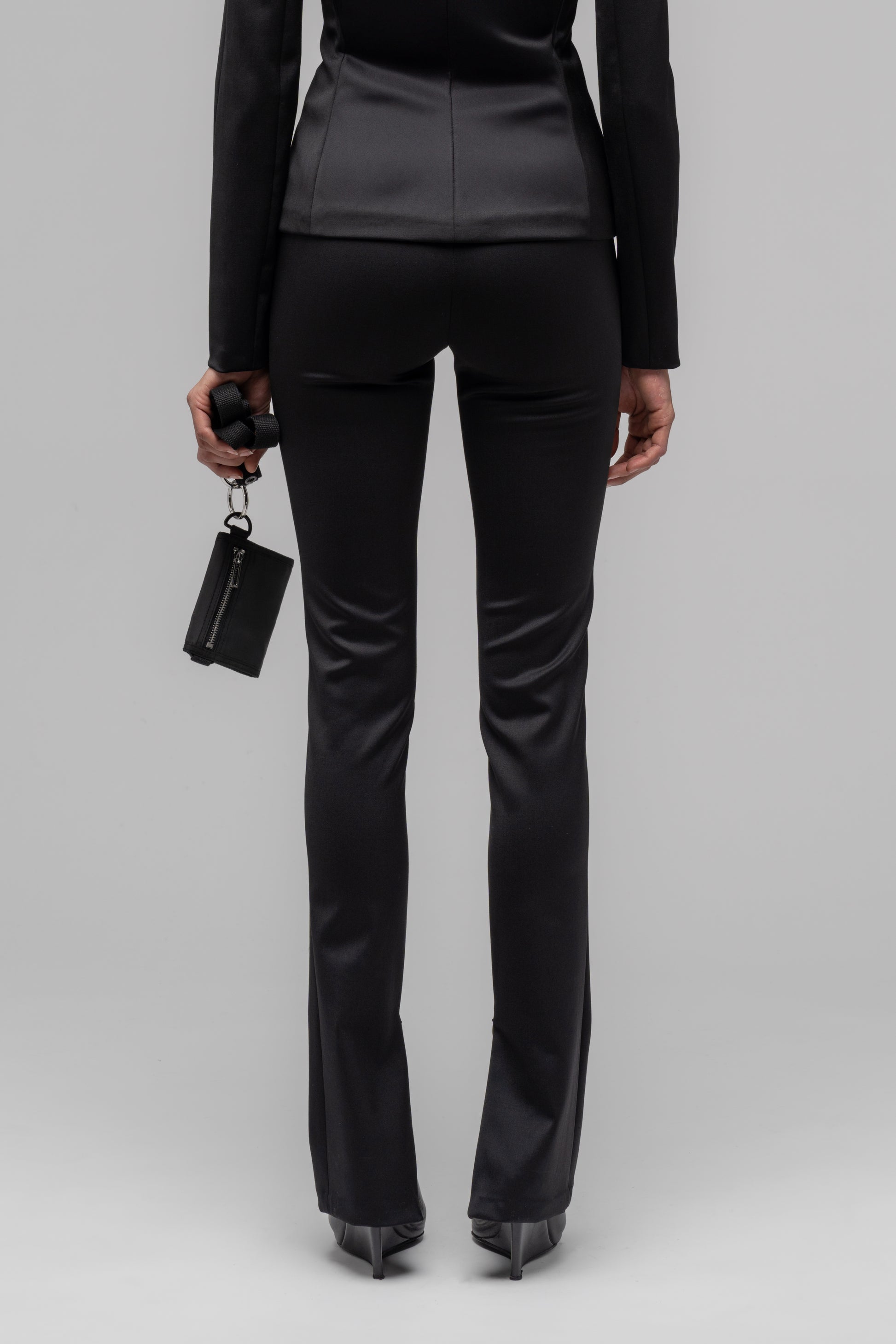 Tight fit suit trousers made from Italian stretch wool with a silky feel. Elasticated waistband and concealed waistband zipper allow you to slide in smoothly. Open the concealed zipper at the leg openings to achieve a slight flare cut.